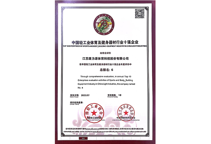 中國輕工業(yè)體育及健身器材行業(yè)十強企業(yè)