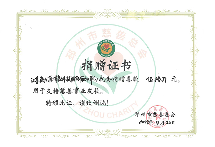 邳州市慈善總會捐贈證書